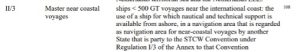 Het gaat daarbij om een limitatie tot “Ships engaged on Near Coastal Voyages”. In paragraaf 2 en 5 van Regulation I/3 in de STCW conventie wordt beschreven dat landen onderling een ‘undertaking’ over het varen in een Near Coastal vaargebied moeten afsluiten. De limitatie “Reizen nabij de internationale kust” is niet conform het STCW-verdrag mede omdat de indruk gewekt kon worden dat er internationaal gevaren (bijvoorbeeld kust-hoppen) kon worden met een dergelijk CoC.